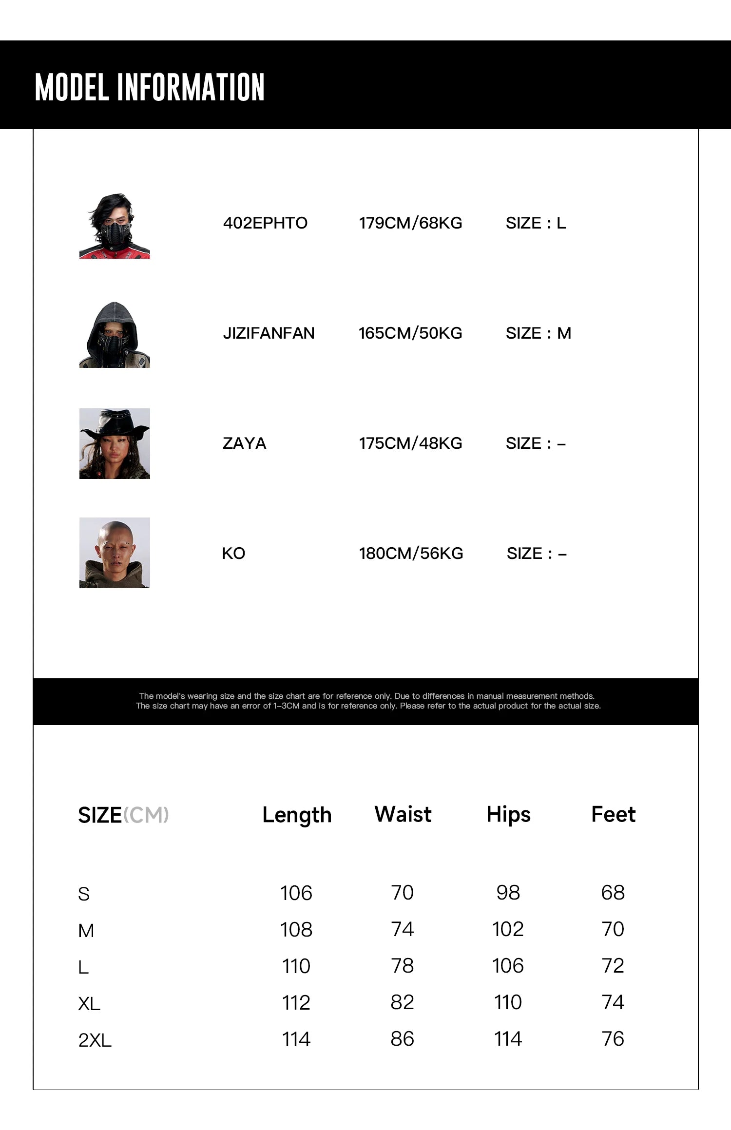 Product Info & Size Chart Details